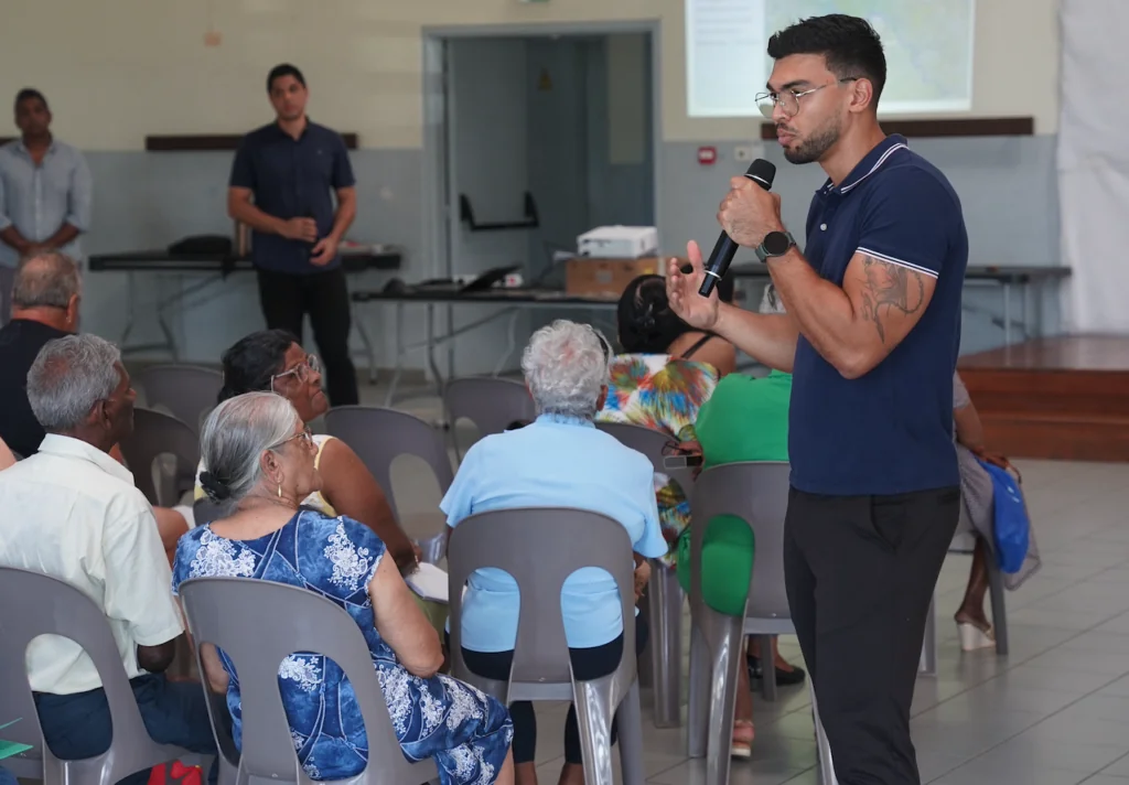Le 20 novembre, la salle Lo Rwa Kaf à Sainte-Suzanne a été le théâtre d’une rencontre essentielle. Le Département de La Réunion, maitre d’ouvrage du projet MEREN, a présenté les premières esquisses du tracé du réseau d’eau MEREN Nord devant les 50 habitants directement concernés, aux côtés la Saphir (conducteur d’opération), Geofit Expert (opérateur foncier), ainsi que les bureaux d’études Artelia et BRL, chargés de la conception du projet.